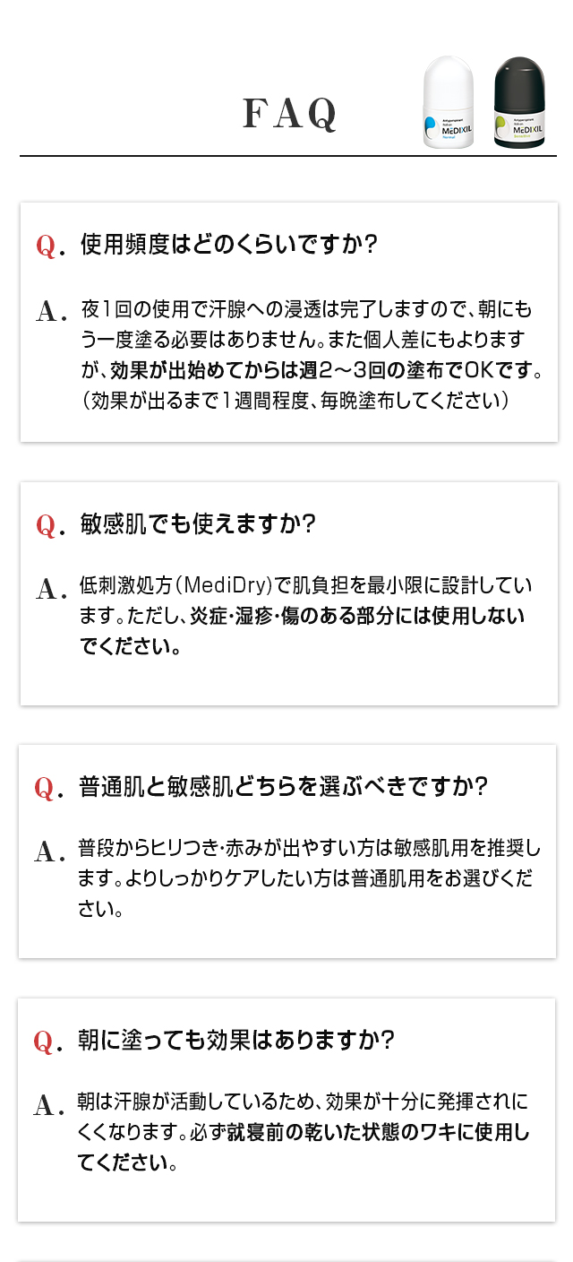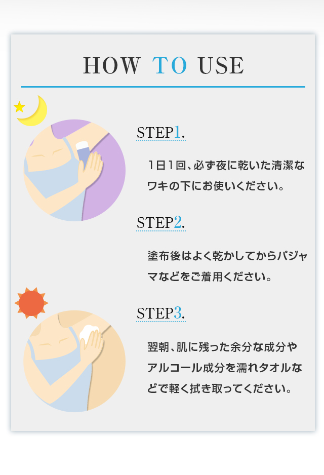 ※汗腺への浸透は完了していますので朝にもう一度塗る必要はありません。