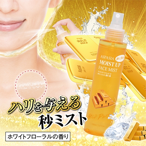 化粧水に含まれた微細なゴールドが、スプレーするたびに肌表面へ均一に広がり、上品なツヤ感をプラス。