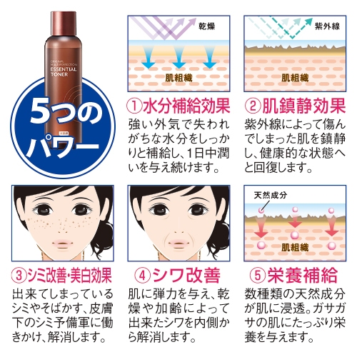 かたつむり粘液が、紫外線などによる乾燥やシミが気になる肌に心地よいみずみずしさを与えます。